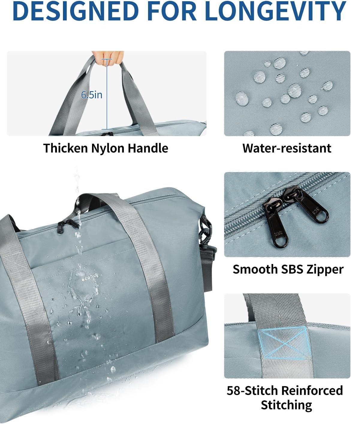【MULTI-FUNCTIONAL DUFFLE BAG】: This travel duffel bag fits all your essentials and is perfect for travel, weekends, yoga, gym, beach, daily use, business trips, and sports. Use it as a travel tote, carry-on, overnight bag, weekender, gym bag, or hospital bag.