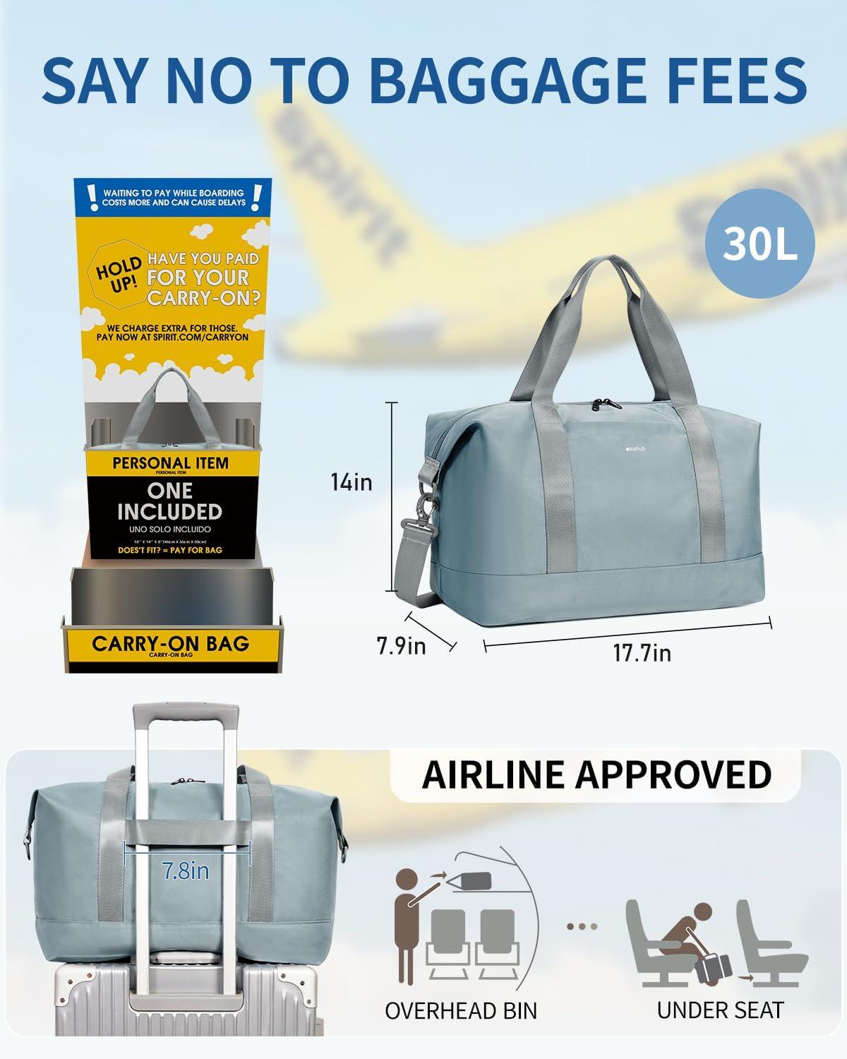 ECOHUB For Spirit Airlines Personal Item Bag 18x14x8 Underseat Carry on Luggage with Removable Wet Bag, Travel Duffel Bags Weekender for Women, 30L (Beige)(Grey)