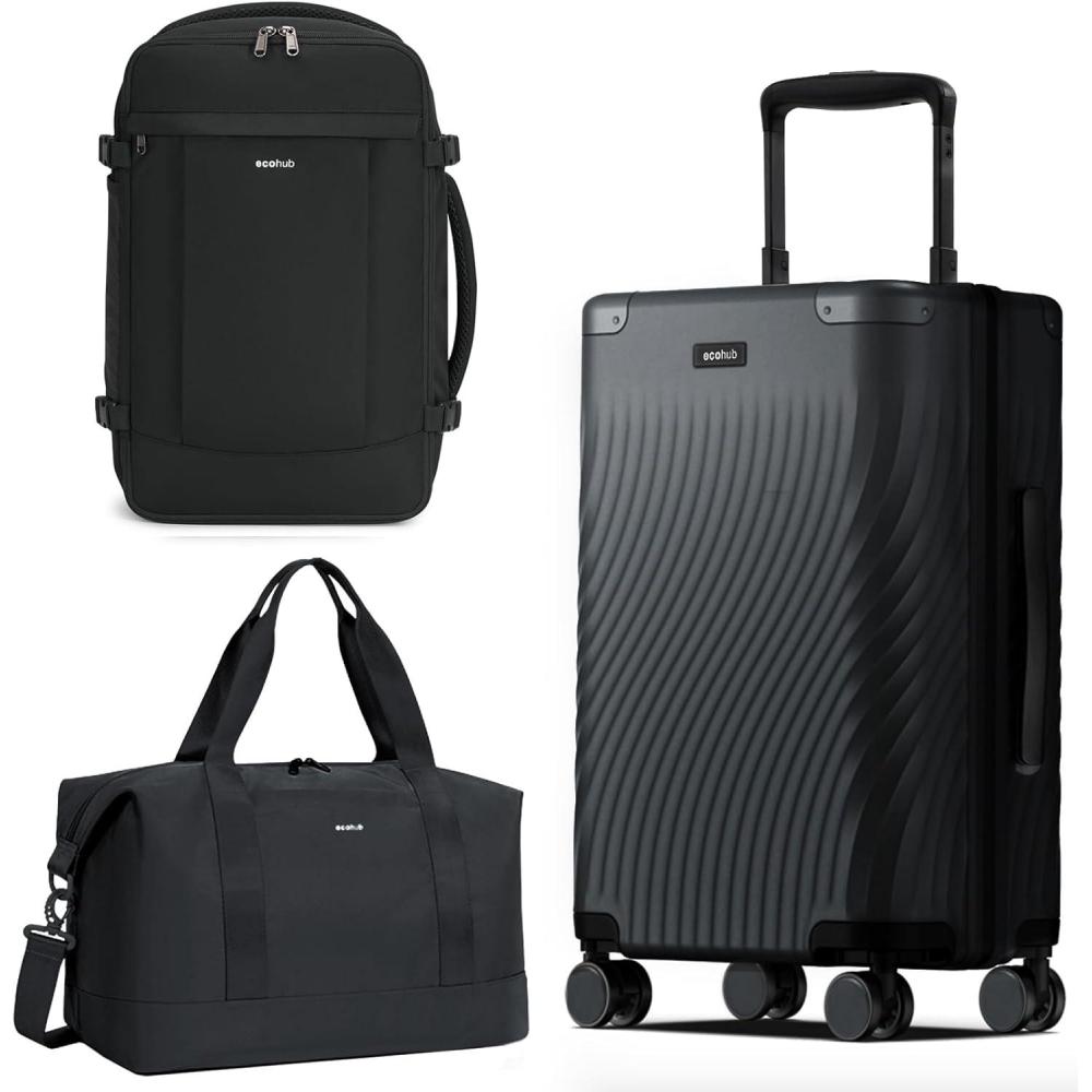 ECOHUB Hardside Expandable Carry On Luggage Set and Travel Backpack 18x14x8 30L Spirit Airlines Personal Item Bag, Black
