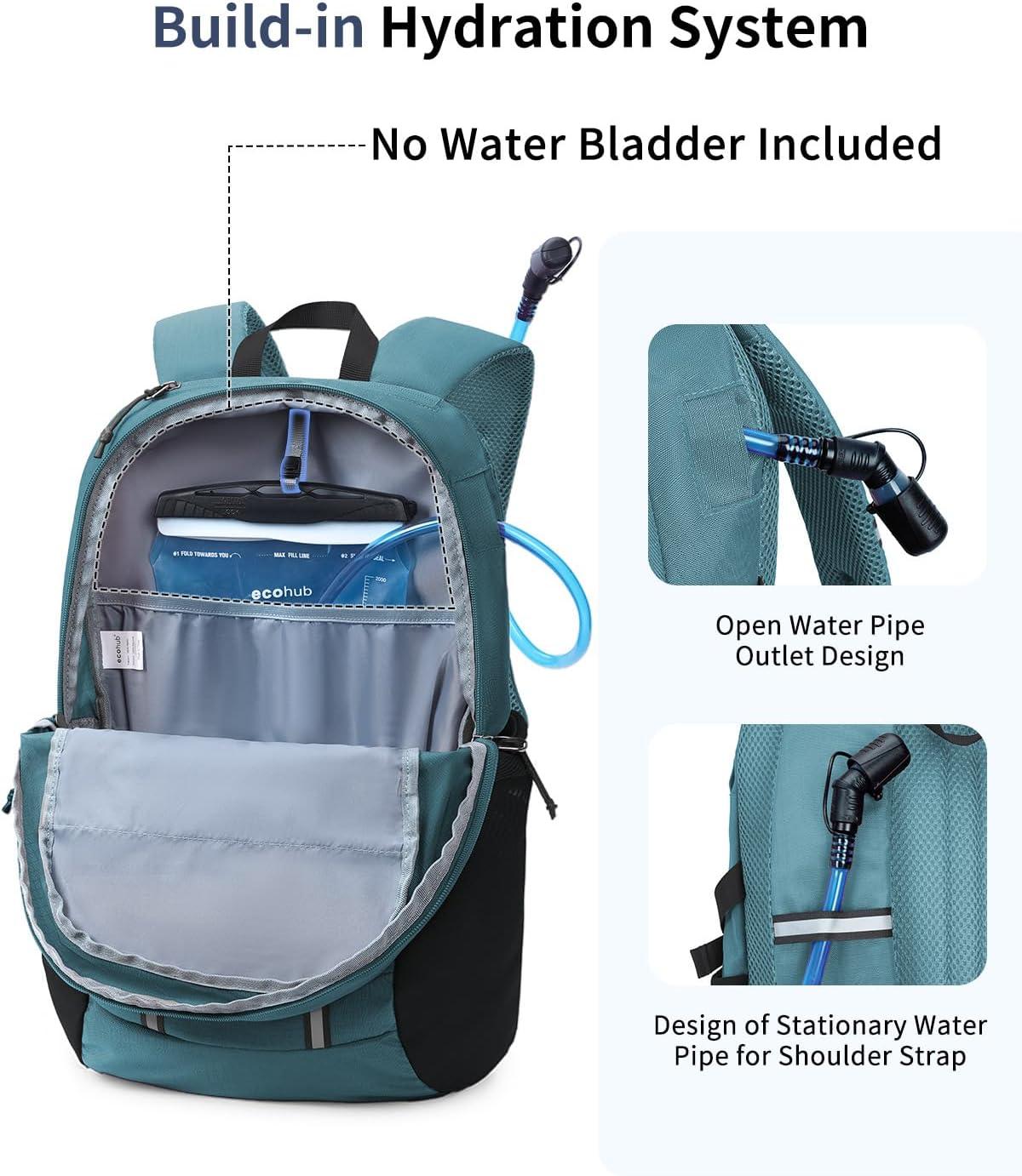 【Inner and Outer Connection Design】 Backpack has hooks inside the main compartment to hold the hydration bladder, and the straw exits from the right side exit of the backpack. Regarding this exit, you can also use it as a USB cable exit. This will better energize you or your electronic devices while in hiking , traveling, camping and so on(No Water Bladder Included)