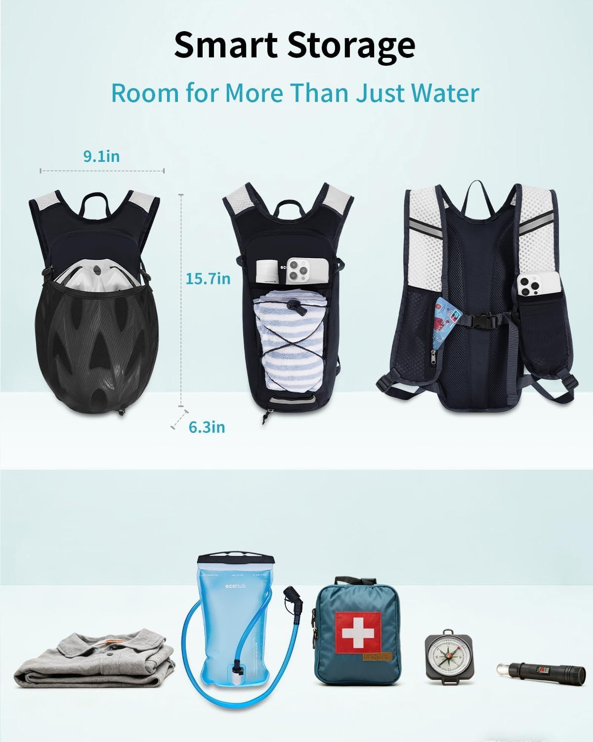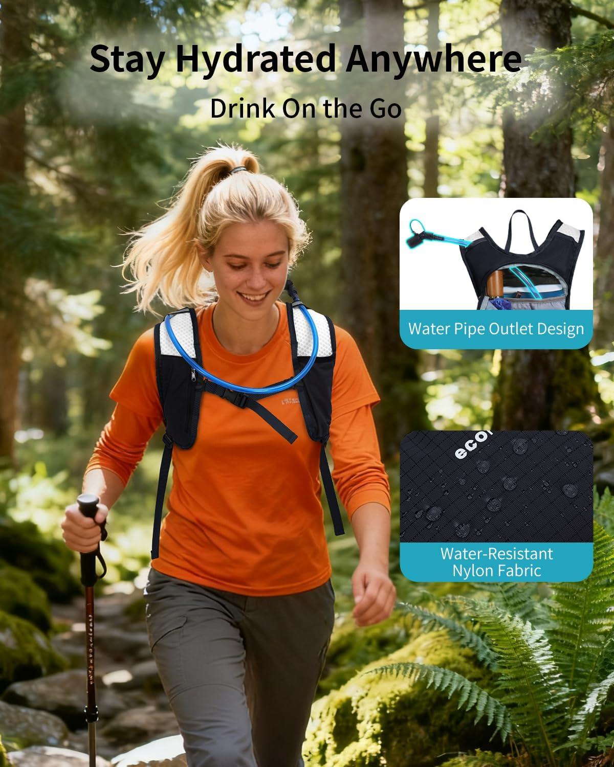 ECOHUB Hydration Backpack with 2L Water Bladder, Lightweight Running Hydration Pack for Men Women, Breathable Hiking Cycling Backpack for Outdoor Sports Marathon Travel(Black)