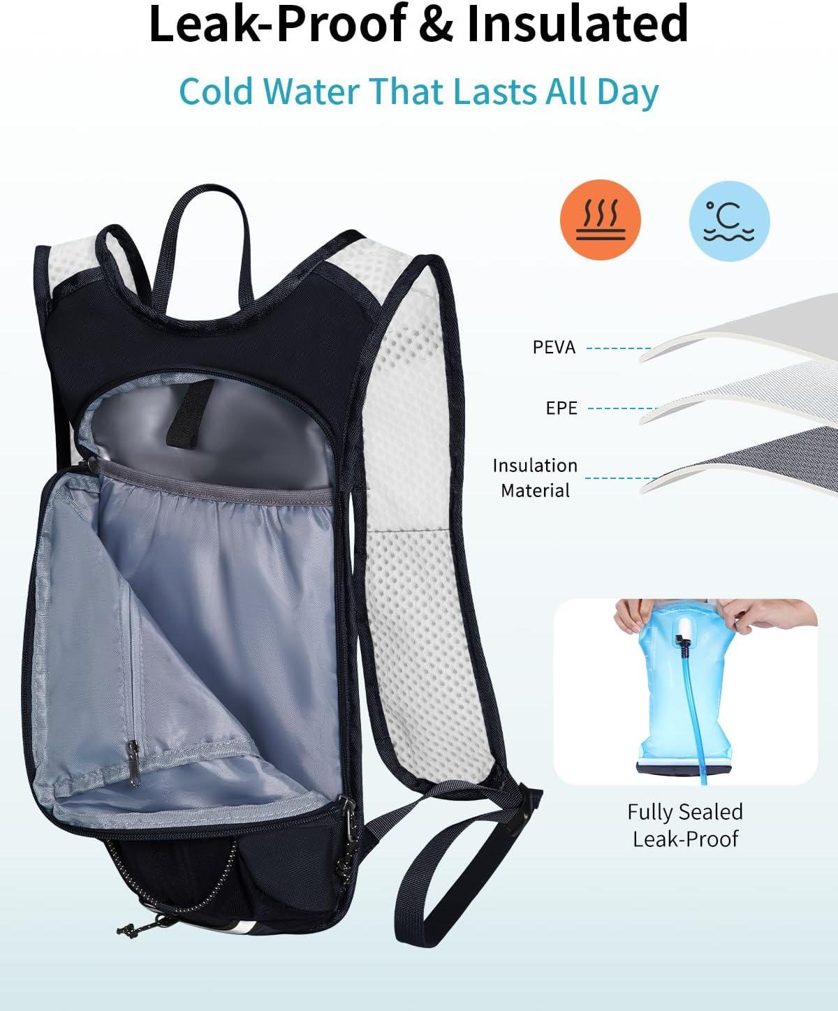 【Hands-Free Hydration with Insulated Bladder Compartment】 Stay hydrated without stopping. Built-in 2L hydration bladder with insulated compartment helps keep your drink cold for longer, allowing you to enjoy refreshing ice water during long runs, hikes, and cycling adventures.