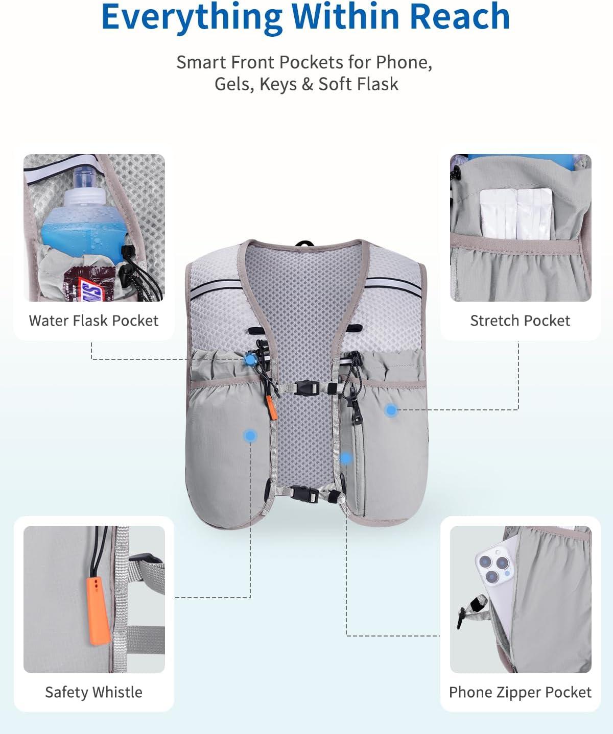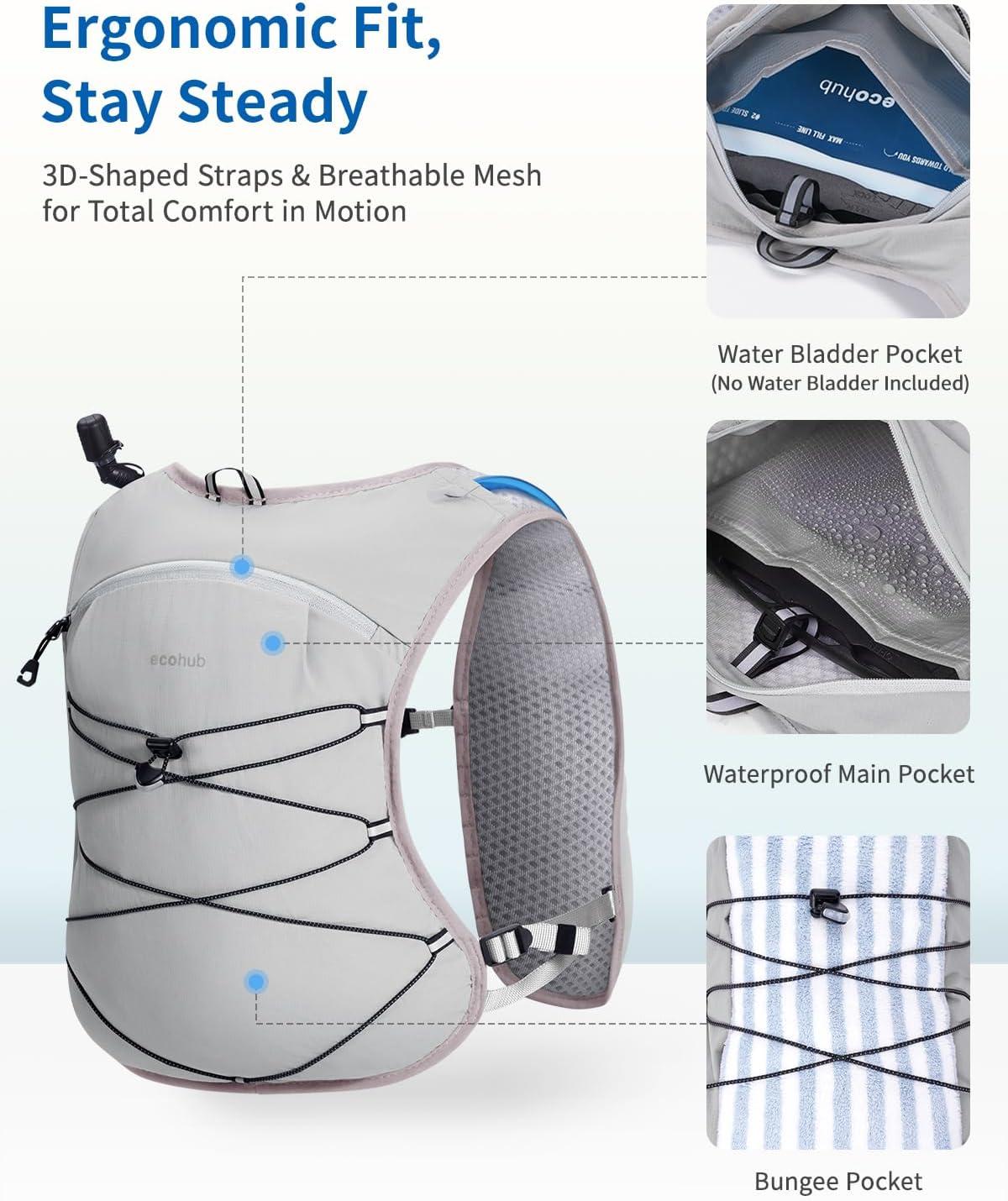 imageECOHUB Running Hydration Vest Backpack Lightweight Breathable Hydration Pack Bag Daypack for Hiking Trail Cycling Race Marathon Water Backpack Vest for Women MenGrey