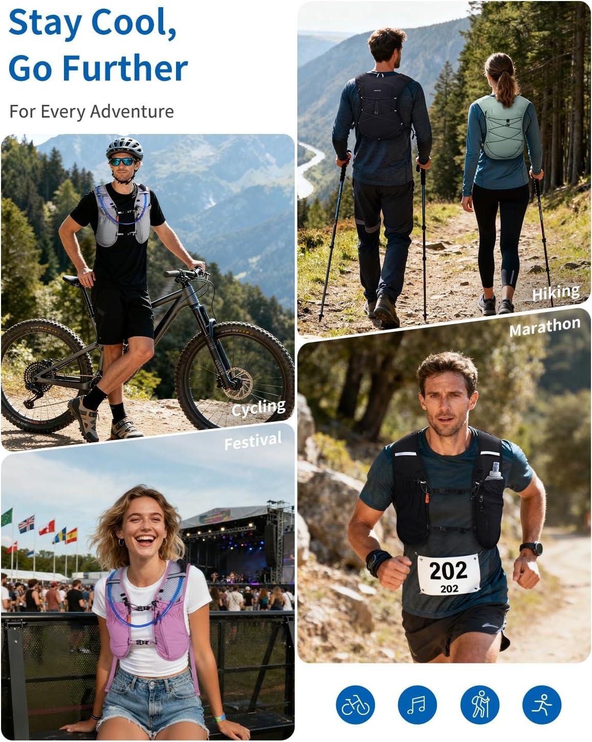 【Breathable and Ergonomic Design】 Ecohub running hydration vest engineered with 3D contour stitching that follows spinal curvature, reduces vest shift and bouncing during runs. The breathable rhombic ventilated mesh design keeps your back cool by maintaining air circulation, preventing discomfort due to accumulated heat. (PATENT PENDING)