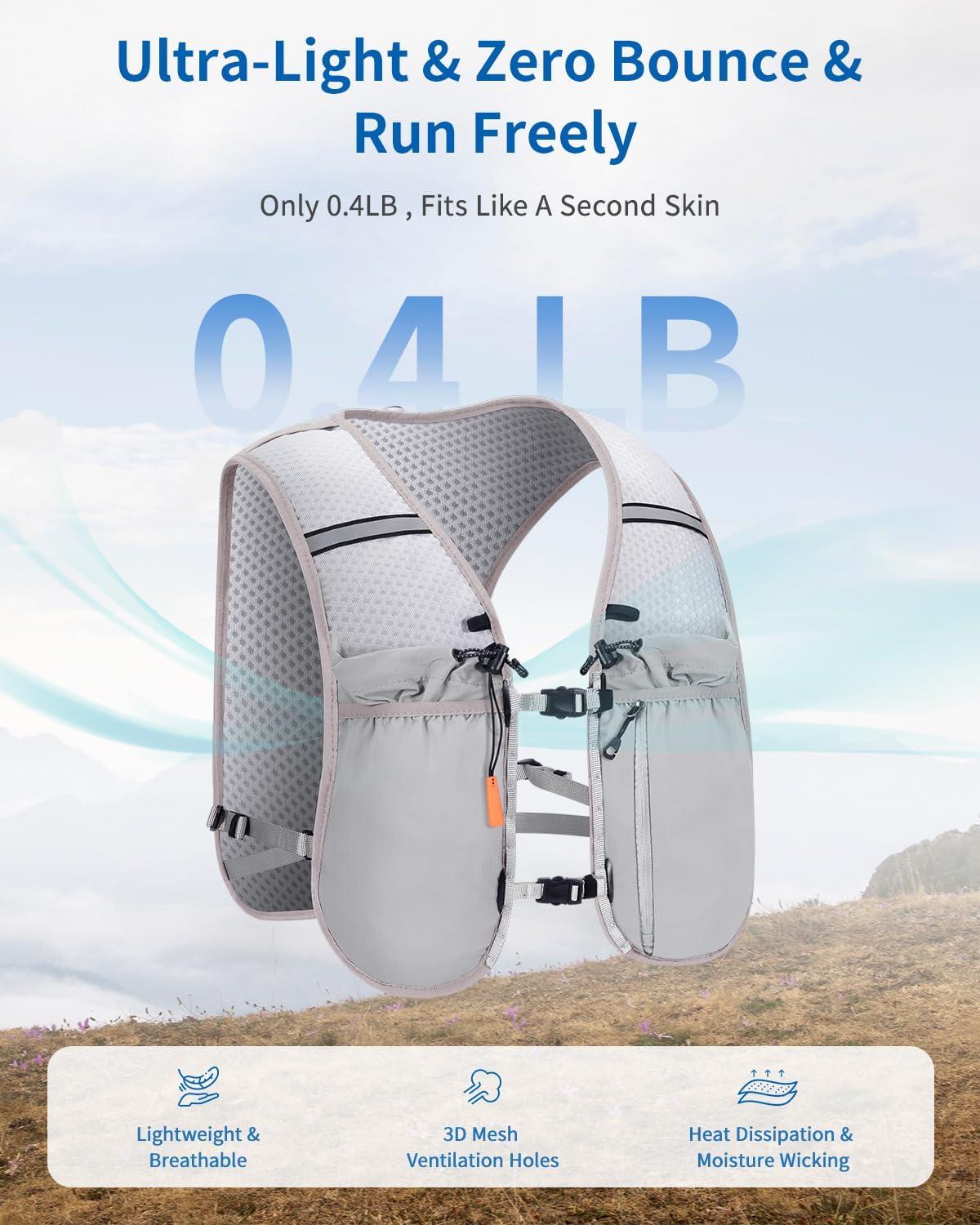ECOHUB Running Hydration Vest Backpack, Lightweight Breathable Hydration Pack Bag Daypack for Hiking Trail Cycling Race Marathon Water Backpack Vest for Women Men(Grey)