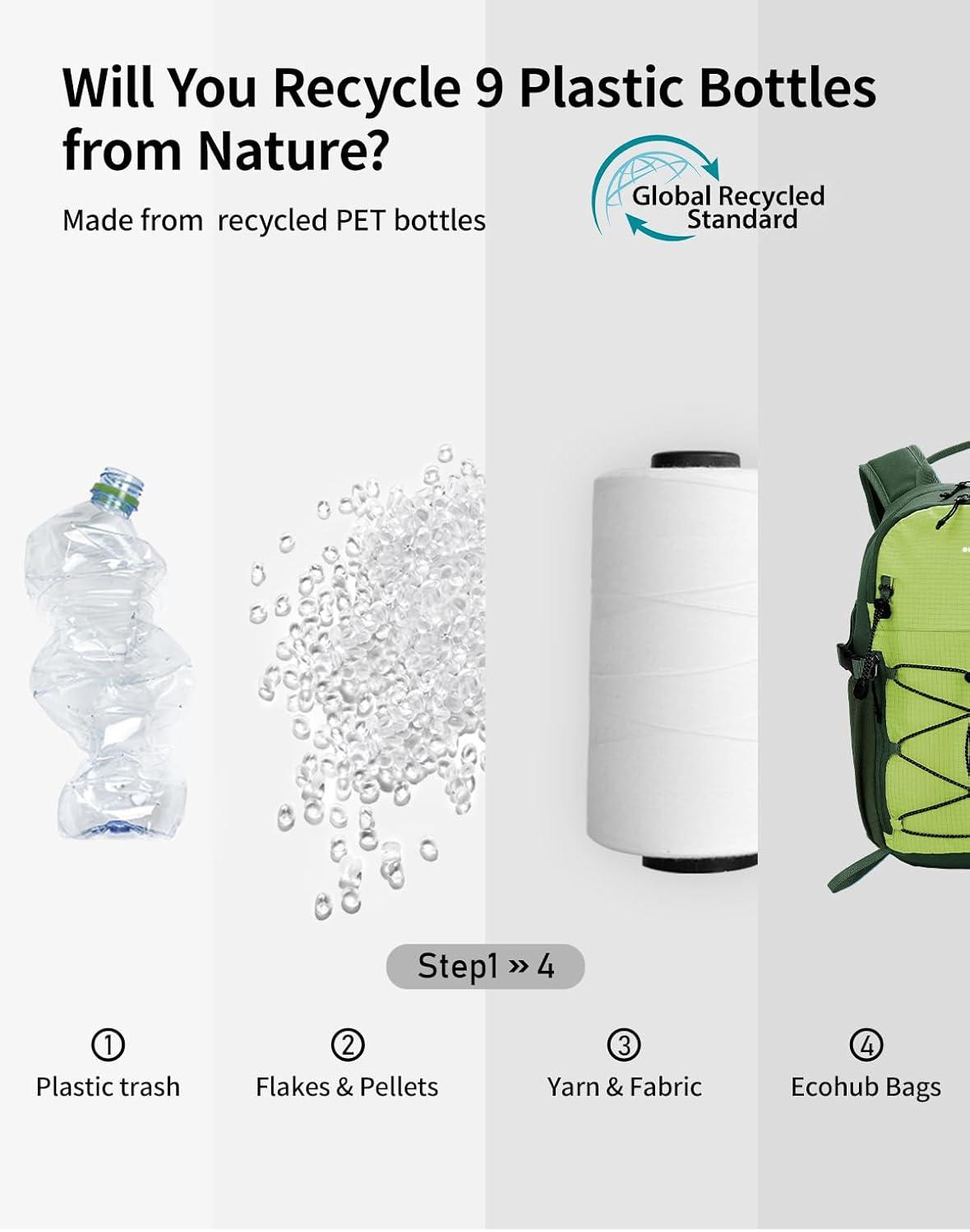 【Water Resistant& Durability】 ECOHUB hiking travel backpack is made of eco-friendly and high quality water resistant quick-drying nylon material, which are water resistant, tear resistant, scratch resistant, wear-resistant, and suitable for use in sports or light rain weather.