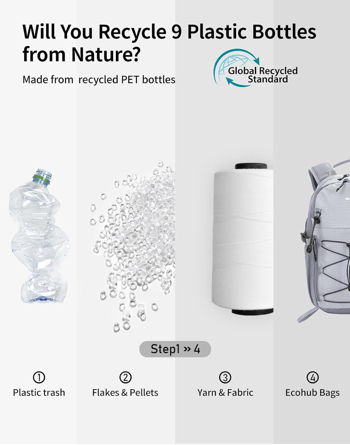 【Water Resistant& Durability】 ECOHUB hiking travel backpack is made of eco-friendly and high quality water resistant quick-drying nylon material, which are water resistant, tear resistant, scratch resistant, wear-resistant, and suitable for use in sports or light rain weather.