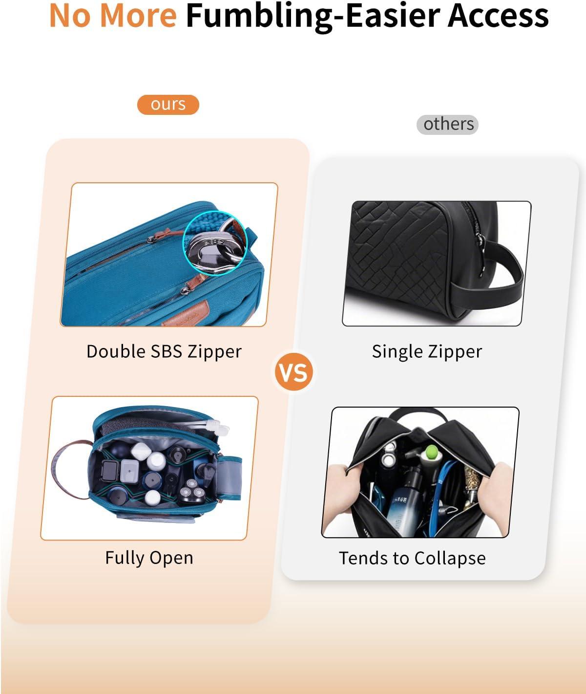 【Easy Access with Double SBS Zippers】: The ECOHUB travel wash bag features a double SBS zipper and a fully open design. This allows for easy and quick access to your items, eliminating the need to rummage. No more fumbling around—you can instantly see and grab what you need.