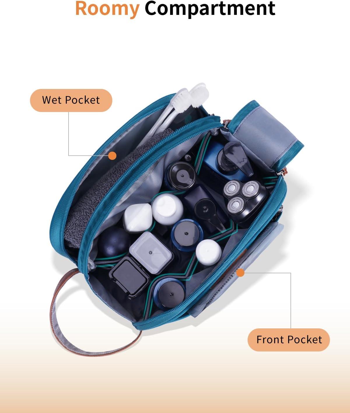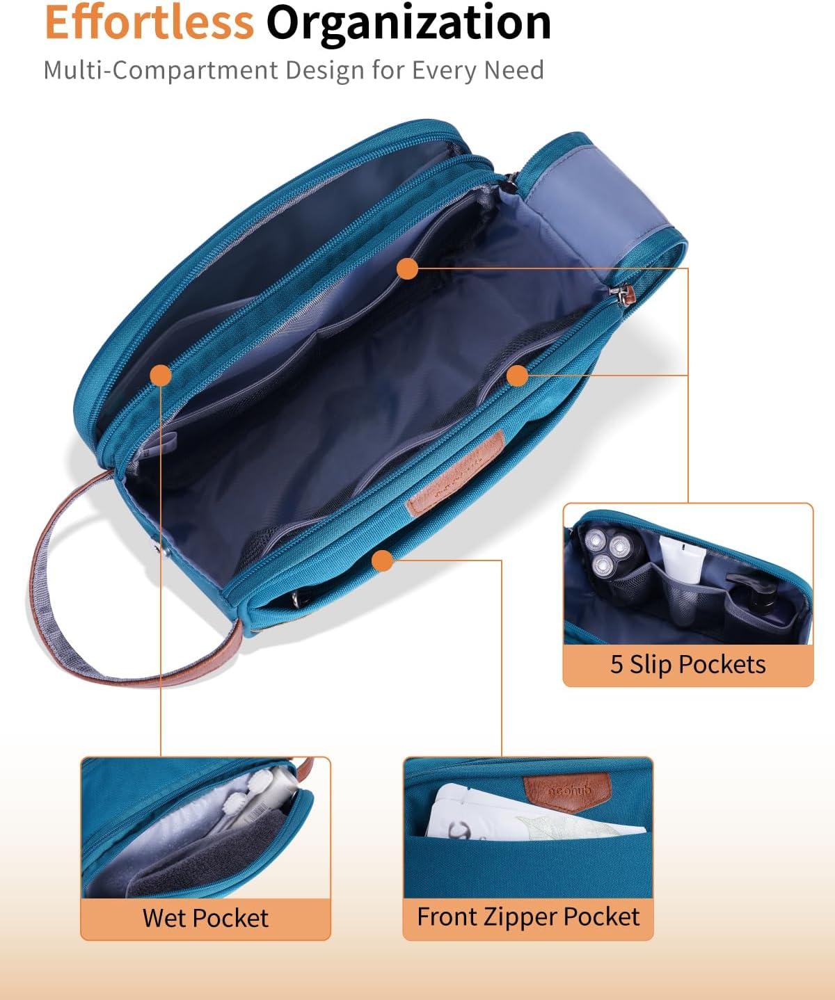 【Dry-Wet Separation Design】The ECOHUB men’s toiletry bag features clever organisation, including a dedicated waterproof wet compartment for damp items, 5 elastic mesh slip pockets for dry essentials, and a front zip pocket for quick-access items. Everything stays tidy, separated, and within reach, making it ideal for travel or daily use.