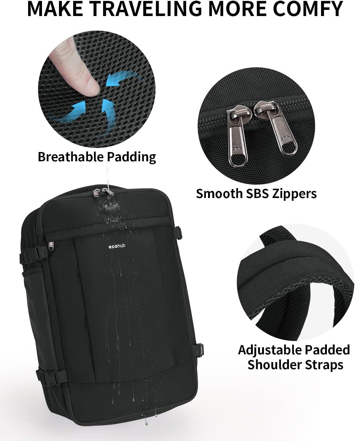 ECOHUB Travel Backpack for Men Women, Carry on Backpack with USB Charging Hole, Spirit Airlines Personal Item Bag Flight Approved
