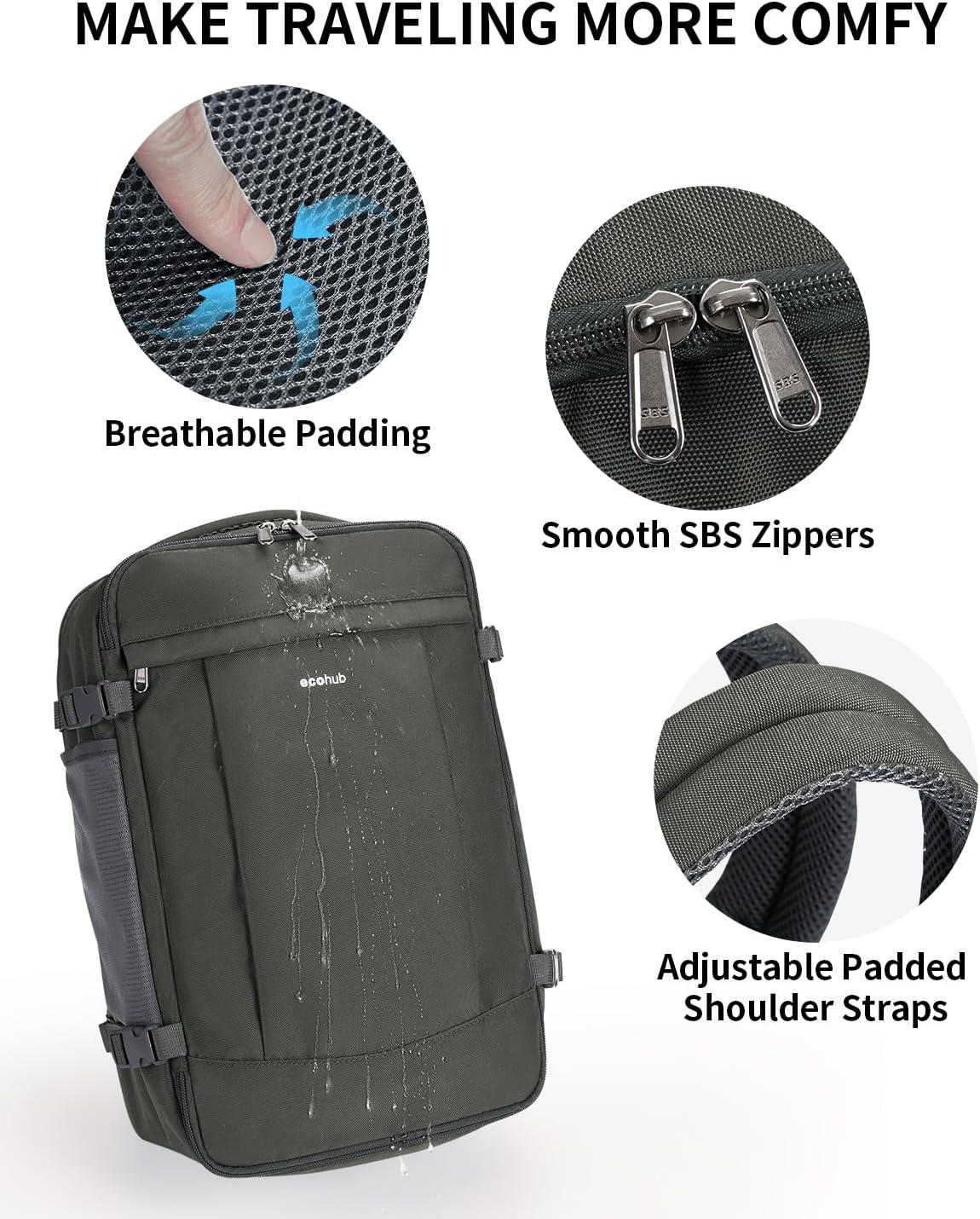 Large Capacity but Easily Meet Airline Size Restrictions Designed for low-cost carriers Frontier Spirit this 18-inch backpack fits perfectly under the seat fully complying with the strict 41 linear inches standard Its exclusive suitcase-style expandable structure plus external compression straps hold 4-7 days of clothing 5 sets of outfits shoes toiletry bag while still fitting under the seat. Skip checked baggage fees and board with zero questions