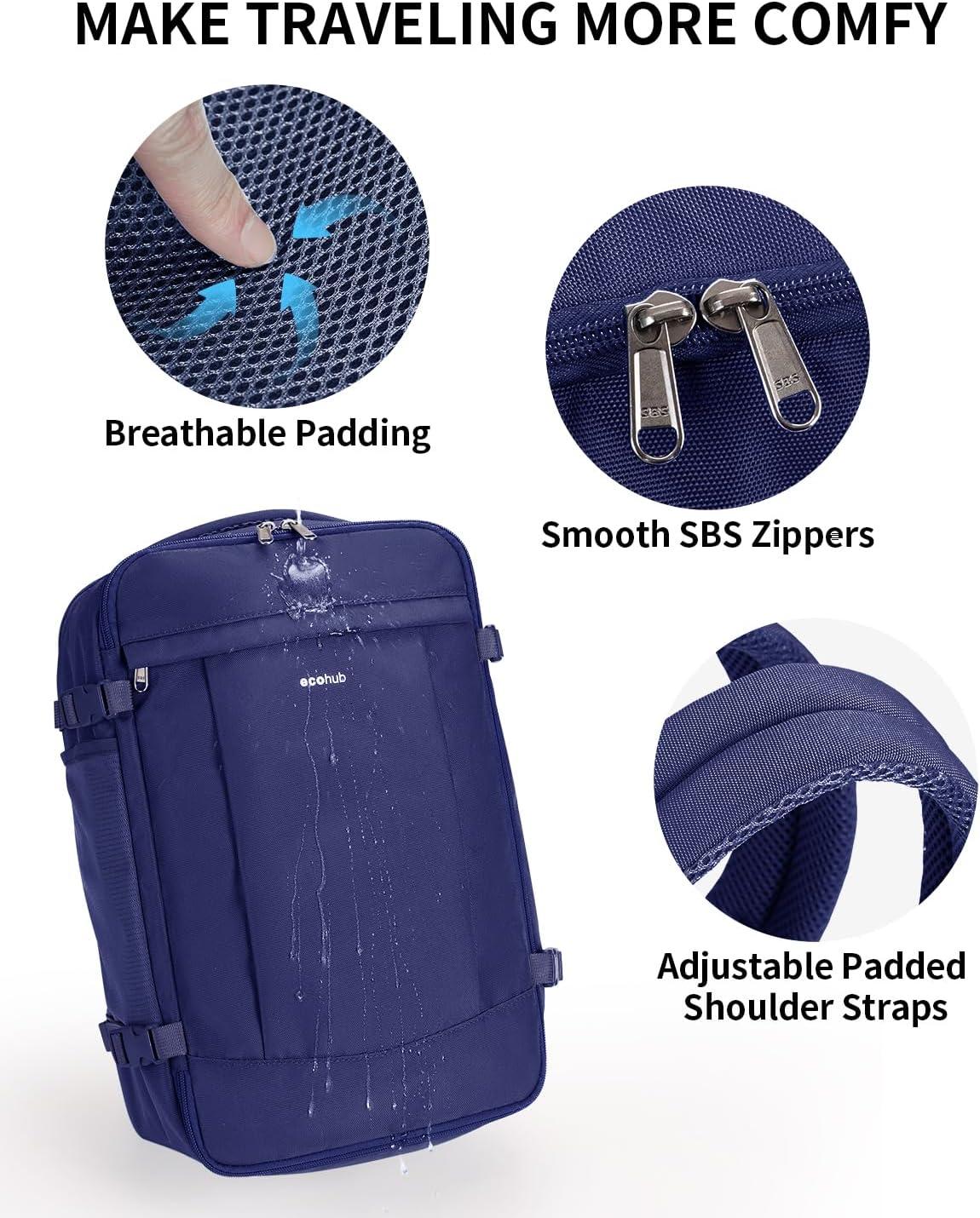 imageECOHUB Travel Backpack for Men Women Carry on Backpack with USB Charging Hole Spirit Airlines Personal Item Bag Flight Approved 156 Inch Laptop Backpack with Anti Theft Pockets 30L Blue GreenNavy Blue