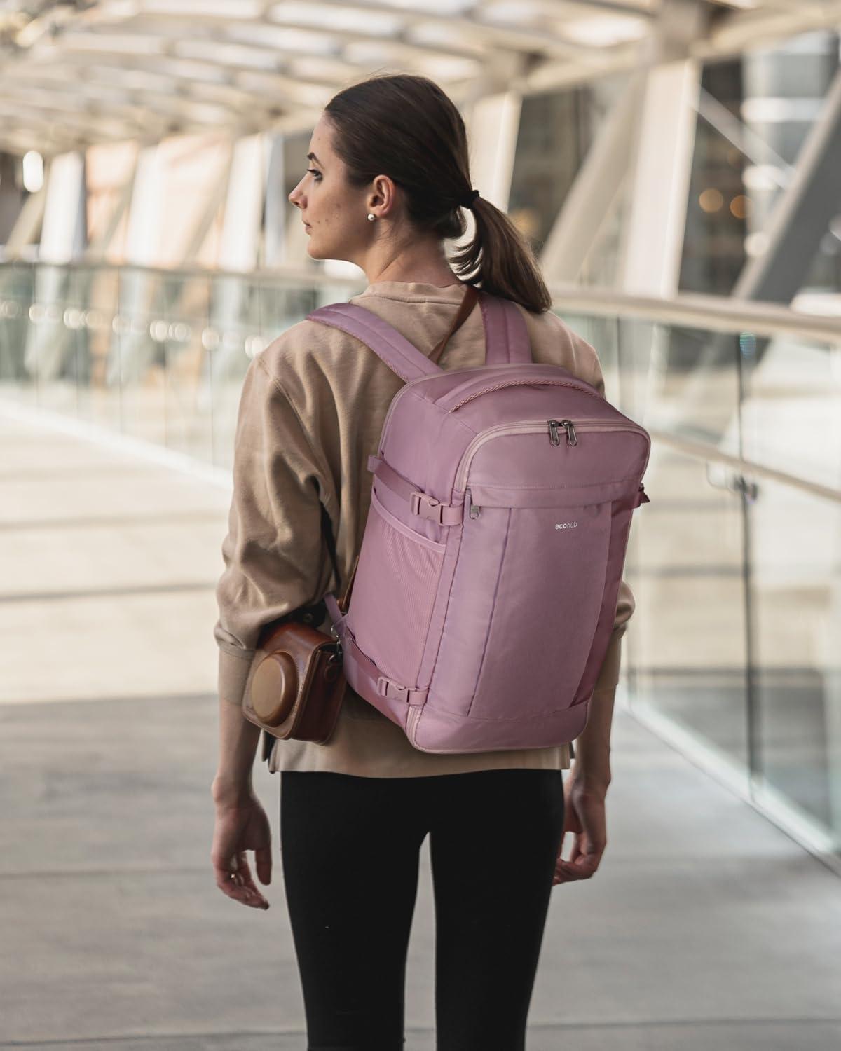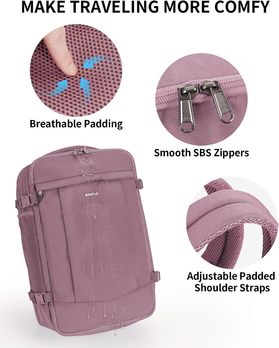 imageECOHUB Travel Backpack for Men Women Carry on Backpack with USB Charging Hole Spirit Airlines Personal Item Bag Flight Approved 156 Inch Laptop Backpack with Anti Theft Pockets 30L Blue GreenPink2