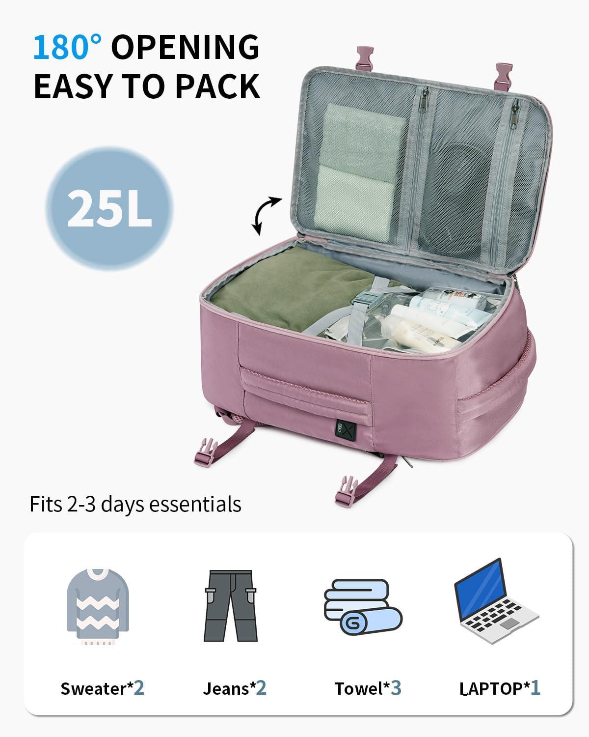 Large Capacity but Easily Meet Airline Size Restrictions Designed for low-cost carriers Frontier Spirit this 18-inch backpack fits perfectly under the seat fully complying with the strict 41 linear inches standard Its exclusive suitcase-style expandable structure plus external compression straps hold 4-7 days of clothing 5 sets of outfits shoes toiletry bag while still fitting under the seat. Skip checked baggage fees and board with zero questions