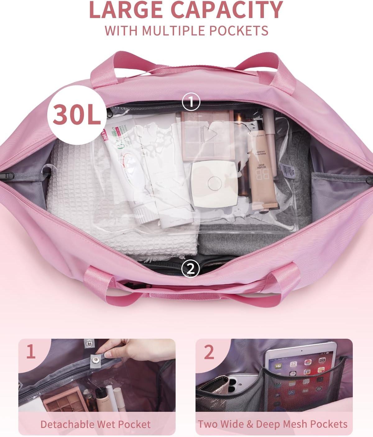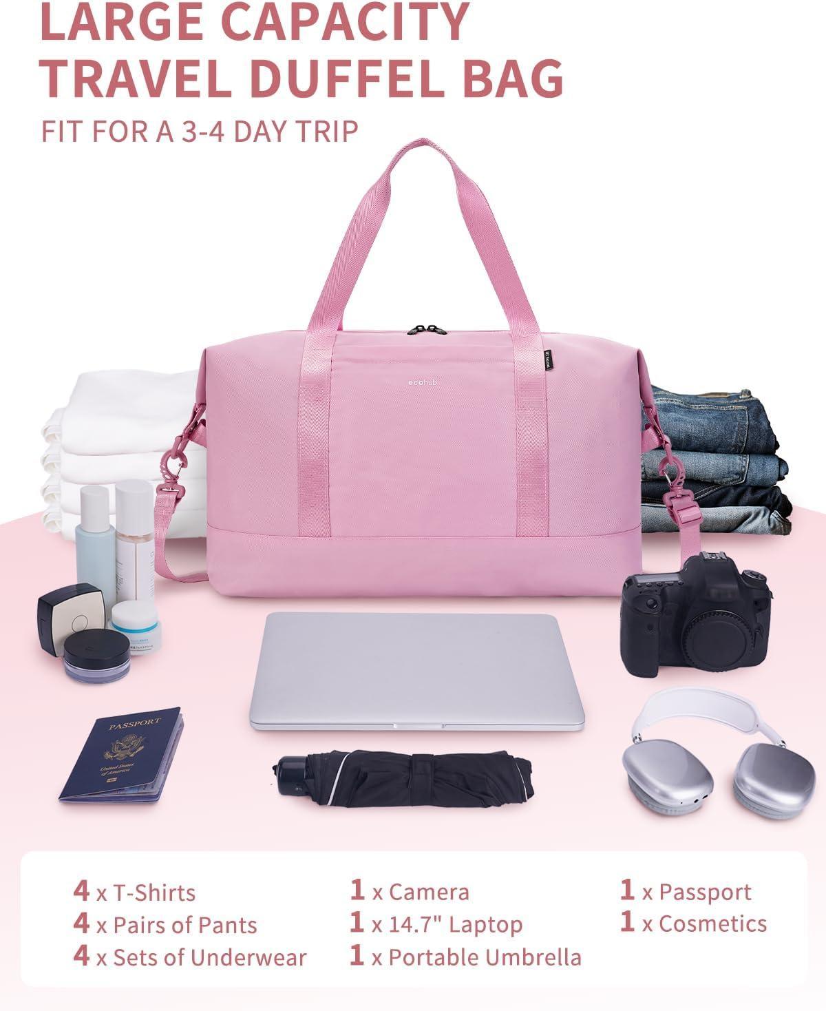 ECOHUB Travel Duffel Bag Water Resistant Weekender Bag Carry On Bags for Women Sport Gym Bags for Men Hospital Bag for Labor and Delivery Overnight Bag Luggage Bag with Trolley Sleeve 30L Grayish Blue(Pink)