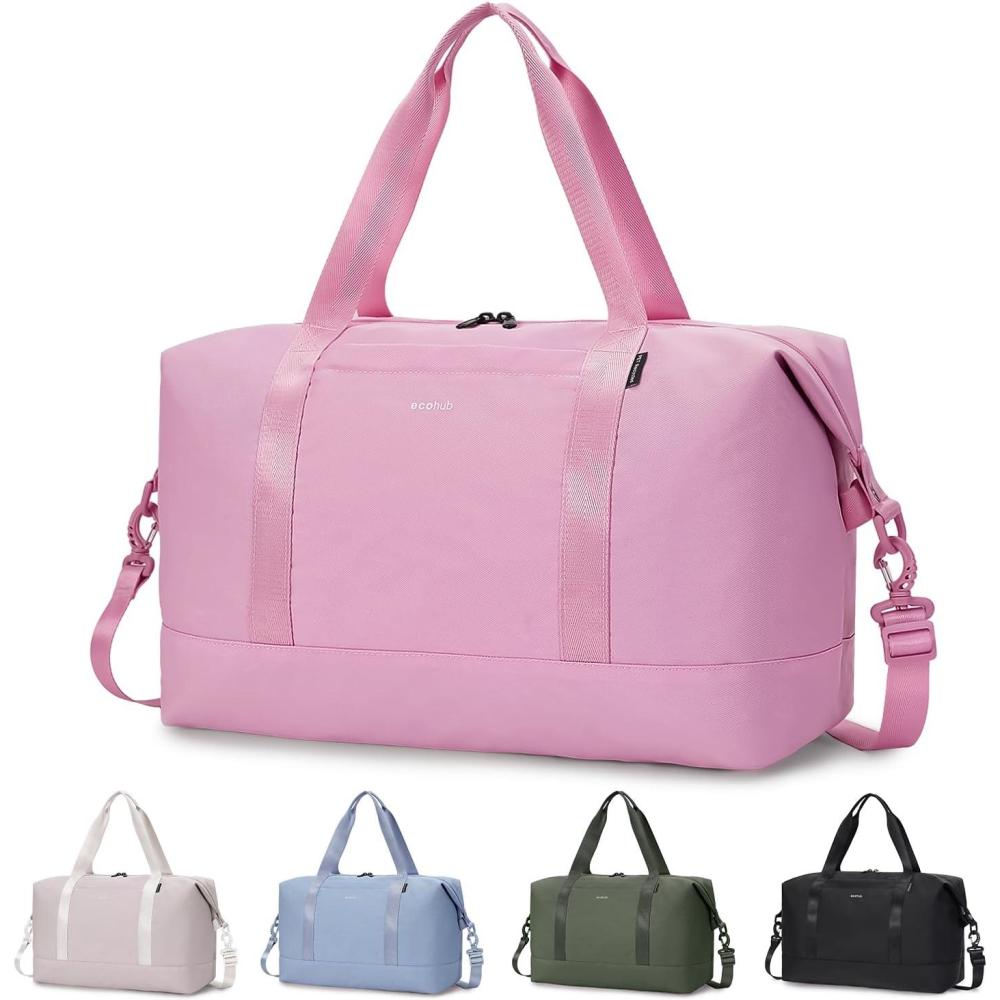 imageECOHUB Travel Duffel Bag Water Resistant Weekender Bag Carry On Bags for Women Sport Gym Bags for Men Hospital Bag for Labor and Delivery Overnight Bag Luggage Bag with Trolley Sleeve 30L Grayish BluePink