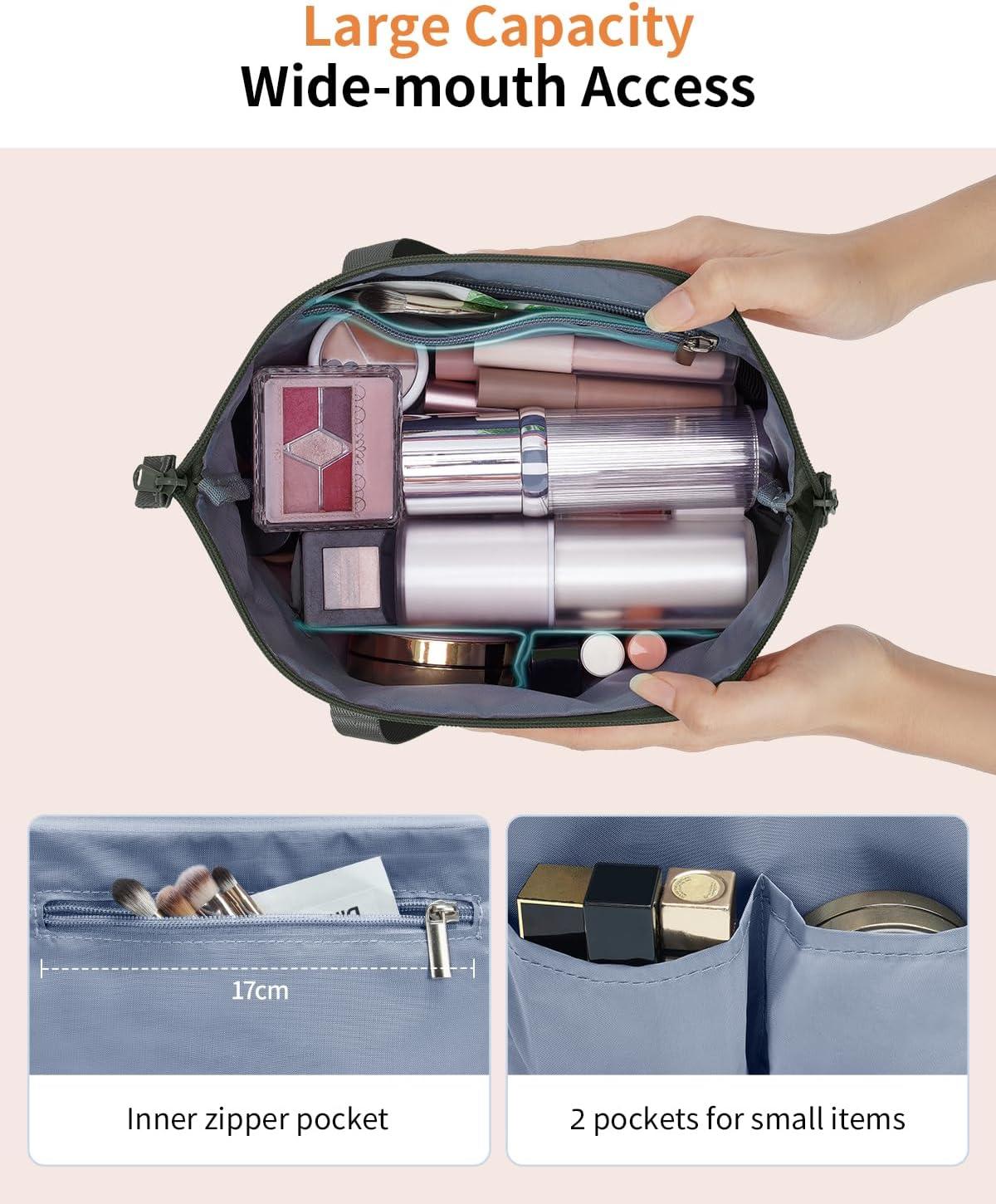 ECOHUB Travel Toiletry Bag for Women, Water-resistant Makeup Bag, Lightweight Cosmetic Bag, Travel Essentials Toiletries Bag, Recycled Makeup Organizer for Full-Sized Toiletries, Beige(Army Green)