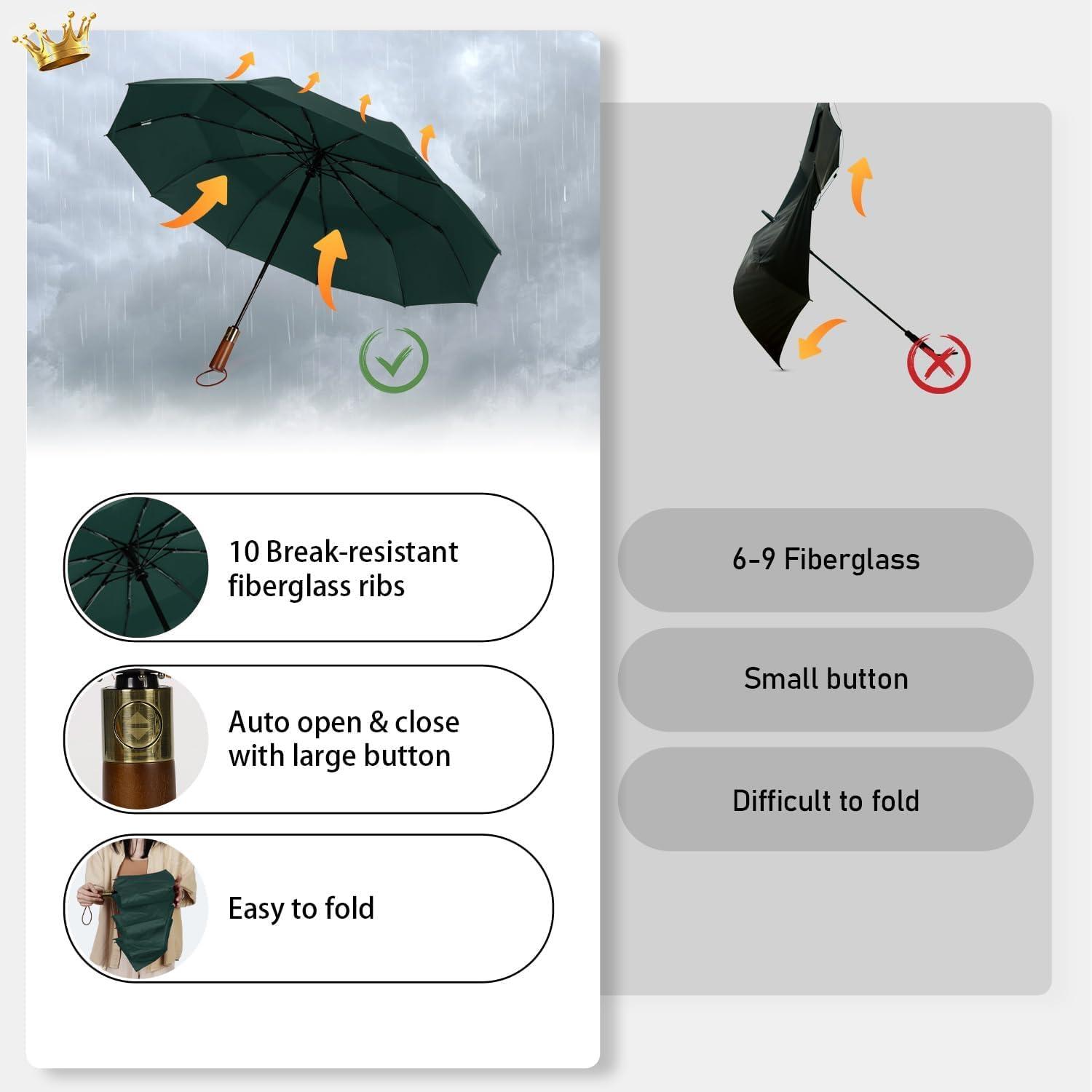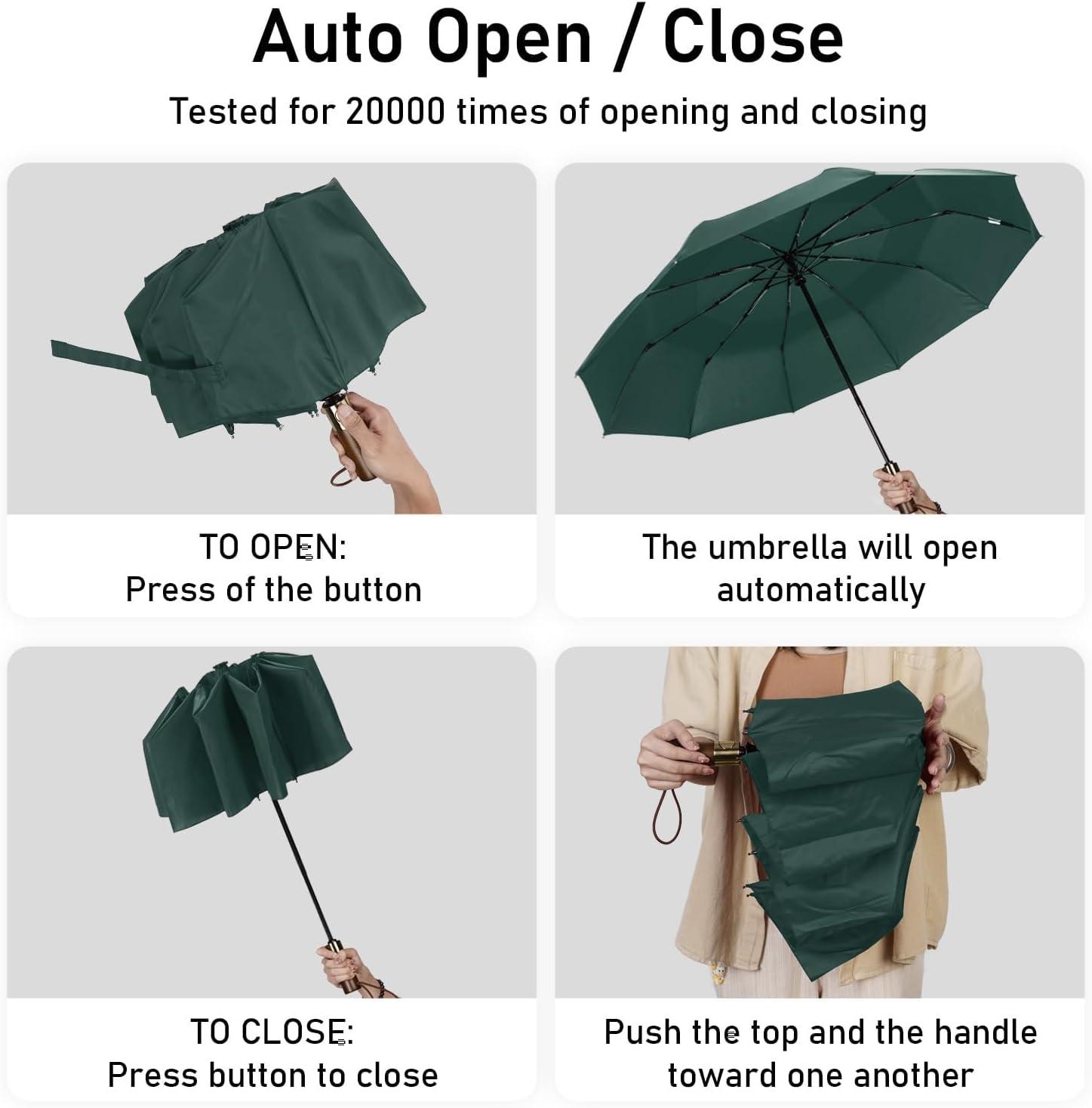 ECOHUB Travel Umbrella for Rain, Windproof Compact Umbrella, Strong Fiberglass Ribs, Easy Automatic Open Close, Anti-Lost Sleeve, Small Portable Umbrella, Fits Backpack & Car