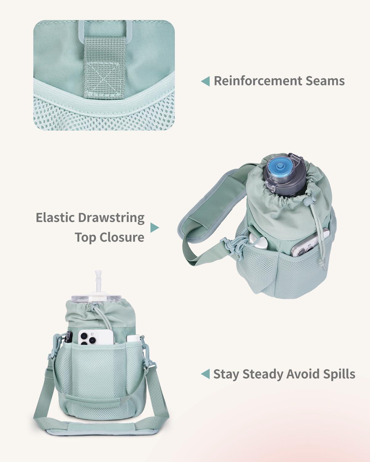 【Stay Organized, Find Fast】: This water bottle sling features a back security zipper pocket that fits phones up to 6.7 inches, 3 quick-grab pockets for instant access in just 2 seconds, and a Key Leash to keep your keys secure. It also includes an elastic drawstring top closure for easy access to the bottle.