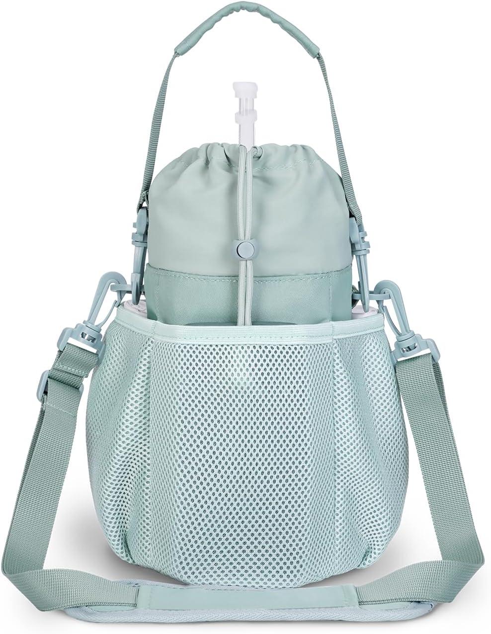 ECOHUB Water Bottle Holder with Strap, Full Coverage Stanley Cup 40/30 oz Tumbler, Insulated Water Bottle Carrier Bag with Back Safety Pocket, Crossbody Sling with Handle for Walking, Patent Pending(green)